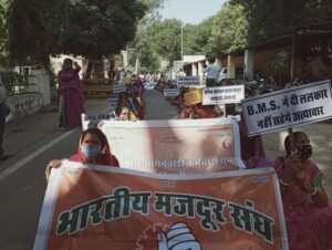 प्रभु सिंह, पिंडवाड़ा (सिरोही) | भारतीय मजदूर संघ ने श्रमिक कानूनों में संशोधन के विरोध में रैली आयोजित कर प्रदर्शन किया। श्रमिक विरोधी कानूनों के विरुद्ध में जिला कलेक्टर के माध्यम से प्रधानमंत्री व मुख्यमंत्री को ज्ञापन दिया । इस अवसर पर वोलकेम इंडिया के दिनेश पुरोहित ने कहा कि “सरकार चाहे कोई भी हो जो भी श्रमिक विरोधी कानून लाएगा,भारतीय मजदूर संघ पूरी ताकत के साथ में उसको जवाब देगा”। इस अवसर पर जेके लक्ष्मी सीमेंट से टिला राम देवासी ने अपने संबोधन में कहा कि “सरकार जो श्रम विरोधी कानून में संशोधन व निजीकरण को किसी भी सूरत में भारतीय मजदूर संघ लागू नहीं होने देगा । राष्ट्र निर्माता मजदूर की अनदेखी सरकार को भारी पड़ेगी। मजदूर ने इस देश को अपने खून पसीने से उन्नति के शिखर पर पहुंचाया है,उनकी अनदेखी भारतीय मजदूर संघ कभी बर्दाश्त नहीं कर सकता,समय रहते यदि सरकार ने अपने निर्णय वापस नहीं लिए तो भविष्य में संगठन को उग्र प्रदर्शन का सहारा लेना पड़ेगा । जिसकी समस्त जिम्मेदारी सरकार की रहेगी”।