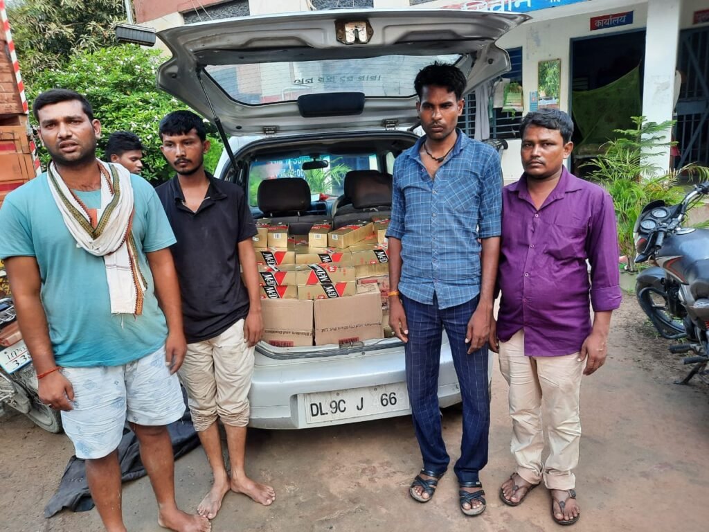 सूचना पाते ही थानाध्यक्ष खुद मय पुलिस बल के साथ चितविश्राव गांव के समीप घेरावन्दी कर दी उसी क्रम में यूपी के तरफ से वैगनार कार जिसका नं डीएल 9 सिटी 4669 आते दिखायी दी तो उसे जांच के लिये रोका। गाड़ी रोकते ही उसमे बैठे दो युवक भागने की कोशिश करने लगे जिनको बिहार पुलिस के जवानों ने दौड़ाकर पकड़ लिया। अभी कार को पकड़ने वाली प्रक्रिया चल ही रही थी कि बाइक पर सवार दो युवक शराब लेकर पहुच गये हालांकि दूर से पुलिस को देख भागने की कोशिश किये मगर सफल नही हुये। पकड़े गये कार व बाइक से 242 बोतल कीमती अफसर चॉइस,10 कार्टन बीयर,12 बोतल 8 पीएम,12 बोतल रॉयल स्ट्रांग व 52 बोतल मैक डावल की कीमती अंग्रेजी शराब निकला। गाड़ी से शराब निकलते दोनो युवकों को गिरफ्तार कर लिया गया। गिरफ्तार युवकों में यूपी के बनकटा थानाक्षेत्र के पण्डितपुरा गांव निवासी रामबचन यादव का पुत्र उमेश यादव, पचरुखी थानाक्षेत्र के पड़ौली गांव निवासी गांधी सिंह का पुत्र मंटू कुमार, दरौंदा थानाक्षेत्र के मछौता गांव निवासी मनदेव यादव का पुत्र जितेंद्र यादव व इसी गांव के बद्री यादव का पुत्र गेनालाल यादव शामिल है। थानाध्यक्ष ने बताया शराब के साथ पकड़े गये चारों युवकों के खिलाफ प्राथमिकी दर्ज कर न्यायायिक हिरासत में भेजा जा रहा है।
