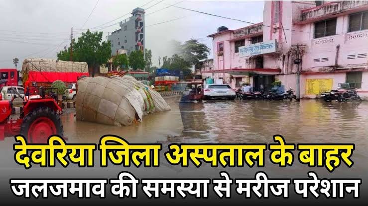 देवरिया राजस्थान के राज्यपाल कलराज मिश्र का गृहक्षेत्र है और इसके साथ ही देवरिया अस्पताल गोरखपुर से मात्र 50 किलोमीटर की दूरी पर स्थित है। योगी आदित्यनाथ भी अक्सर आते रहते हैं। लेकिन जिला अस्पताल में सफाई व्यवस्था के साथ साथ बारिश के पानी कि निकासी तक पूरी तरह चौपट है। शुक्रवार से लगातार बारिश के बाद अस्पताल परिसर में पानी घुटनों तक जमा हो गया हैं इस दौरान यहां आने वालों के लिए पैदल चलने का रास्ता तक नजर नहीं आ रहा हैं। जलभराव होने से अस्पताल में भर्ती मरीज व तीमारदार परेशान हो रहे हैं। स्थानीय निवासी देवेश कुमार का कहना है कि देवरिया के सभी आलाधिकारी इसी रोड से आते जाते है जिलाधिकारी भी महज पांच सौ मीटर दूर रहते है लेकिन सभी आँख मूंद कर चले जाते है । मेन रोड से अस्पताल परिसर में जाने में घुटनों तक पानी पार कर के जाना पड़ता हैं ।