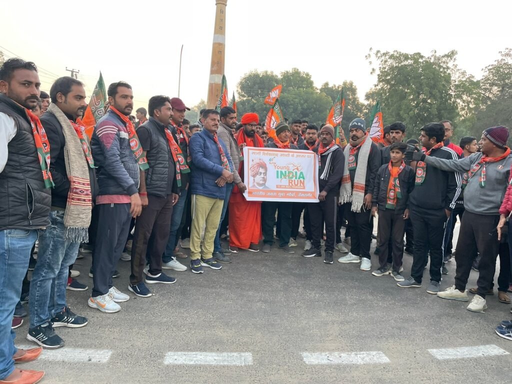 महेंद्र सिंह, जैसलमेर। स्वामी विवेकानंद की जयंती पर भारतीय जनता युवा मोर्चा ने मैराथन का किया आयोजन। गजरूप सागर ठिकाना संत श्री बाल भारती जी महाराज तथा भाजपा ज़िलाध्यक्ष चंद्र प्रकाश सारदा, युवा मोर्चा ज़िलाध्यक्ष उदय सिंह भाटी के सानिध्य में युवा दिवस के उपलक्ष में हुआ शानदार आयोजन। कार्यक्रम संयोजक गजेंद्र सोलंकी के नेतृत्व में सैकड़ों युवाओं ने लोगो को जागरूकता ओर प्रेम भाव, आपसी सौहार्द का संदेश देते हुए मैराथन आयोजन किया