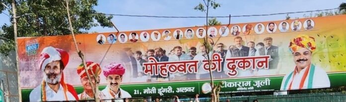 यहां आने वाले लोग पोस्टर पर बड़े-बड़े अक्षरों में लिखी मोहब्बत की दुकान पढ़कर चर्चा कर रहे हैं। पोस्टर पर राहुल गांधी, मुख्यमंत्री अशोक गहलोत और पूर्व केंद्रीय मंत्री जितेंद्र सिंह की बड़ी-बड़ी तस्वीरें प्रदर्शित की गई हैं। साथ ही पूर्व उपमुख्यमंत्री सचिन पायलट की एक छोटी सी फोटो भी दिख रही है। पार्टी के कई अन्य नेताओं के फोटो भी छोटे हैं। पोस्टर में कुछ विधायकों को भी जगह मिली है।