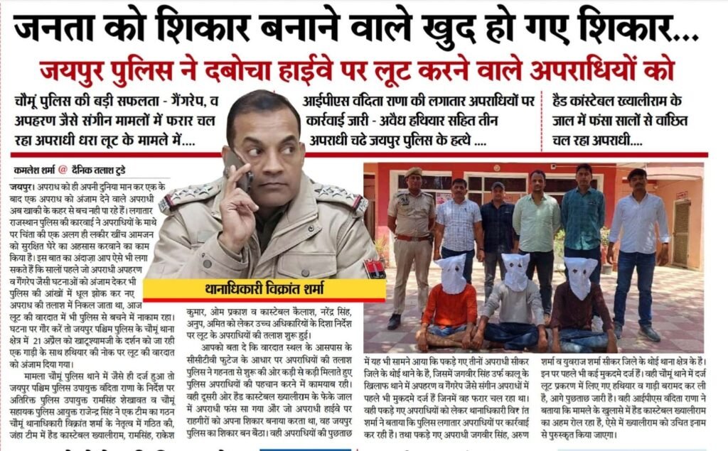 - जनता को शिकार बनाने वाले खुद हो गए शिकार – जयपुर पुलिस ने दबोचा हाईवे पर लूट करने वाले अपराधियों को…..