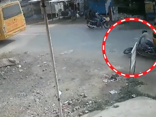 वीडियो में दिखता है दर्दनाक मौका: घटना के समय एक स्कूल बस ने एक बाइक सवार शिक्षक को कुचल दिया, जिसका वीडियो सीसीटीवी कैमरे में कैद हो गया है। 14 सेकेंड के वीडियो में दिख रहा है कि बस के चालक ने बस को रोकने की कोशिश नहीं की और बस ने बाइक सवार शिक्षक को कुचल दिया। बाइक के पिछले पहिये भी बस के ऊपर चढ़ गए और शिक्षक की मौके पर मौत कर दी।