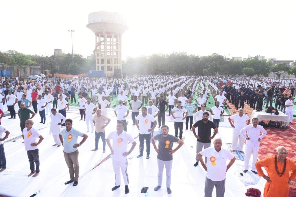 योग दिवस हजारों योग साधकों ने सामूहिक योगाभ्यास कर दिया आरोग्यता और वसुधैव कुटुंबकम् का संदेश